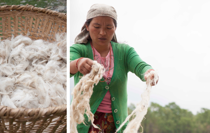These meticulous four steps have been followed for centuries to prepare the wool needed for crafting the carpets. The precious fibre is obtained from Tibetan sheep that graze in the highlands of Tibet.