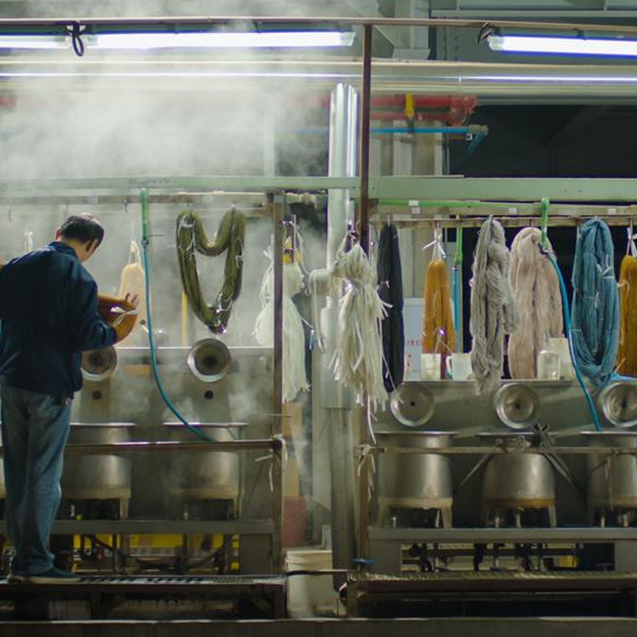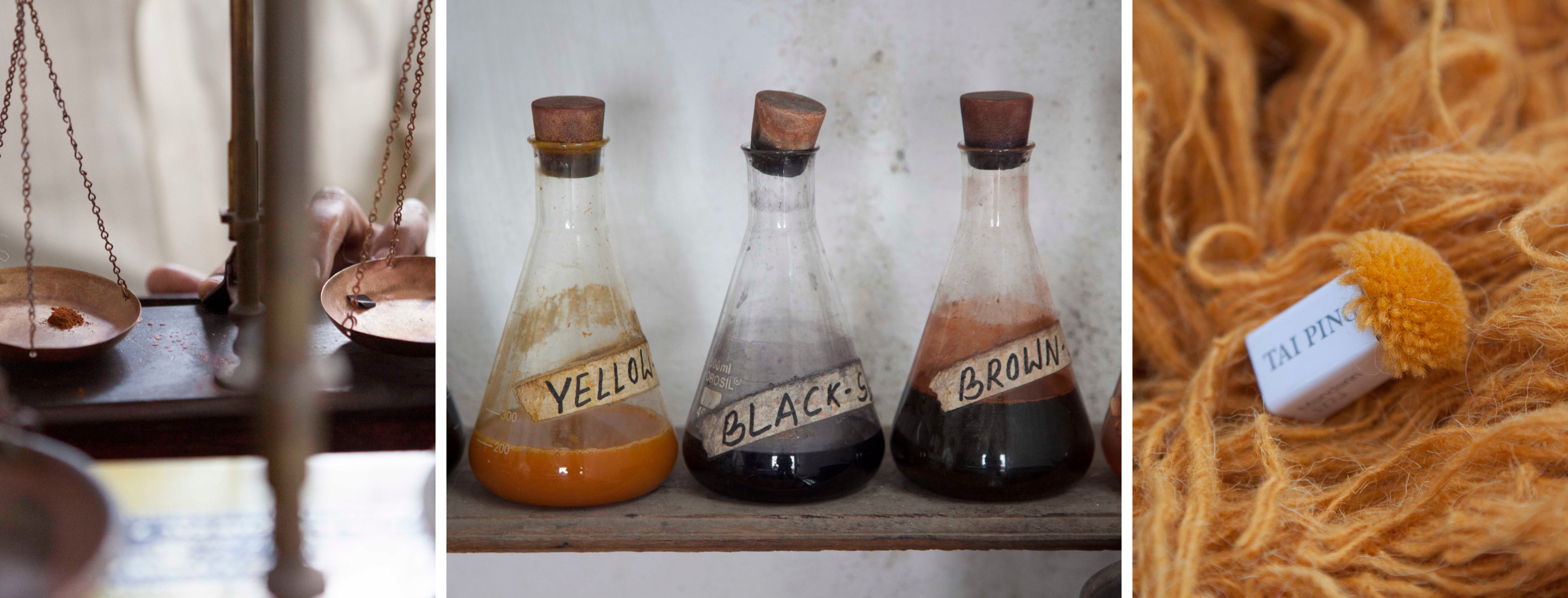 Dyeing is a critical process and among the most demanding challenges faced by TaiPing: discerning design-oriented clients require precision colour-matching … not made easier by the fact that people see colour differently! The recipe for any new colour is developed using a computer-controlled recipe formulations machine. This calculates the types, quantities and combination of dyestuffs to deliver the required colour. Then it prepares the recipe, which is scaled up to produce the production batch in the dye house. All completed yarn batches are also visually assessed by skilled colourists, using four different types of light – daylight, fluorescent, UV and infrared.