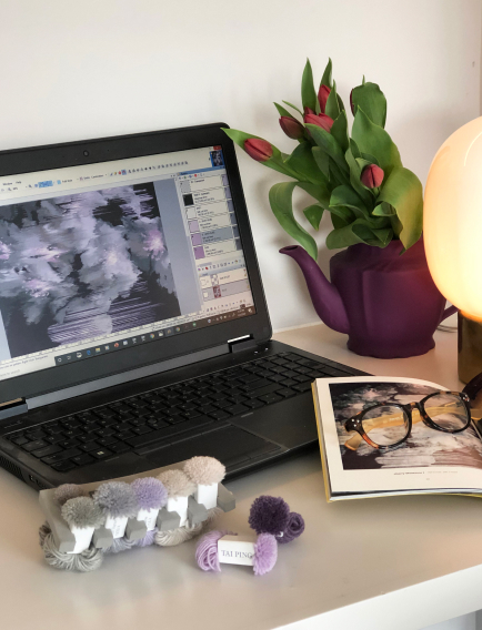 A Tai Ping custom project typically starts with design development. The client may propose their own ideas, or may use a Tai Ping collection, or they may simply have a colour palette and genre in mind and leave the rest to the Tai Ping design team. Tai Ping offers 80+ different material choices, including wool, silk, cashmere, flax and cotton. The standard pom box contains 560 colour choices, although each year over 2,000 unique colours are produced.