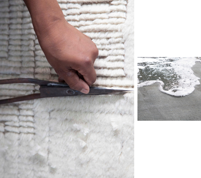 The most skilled finishing artisans, with years of experience, perform these intricate operations with hand shears and scissors. A final inspection takes place to verify the dimensions, design execution, aesthetic and all technical parameters such as weight and pile height.