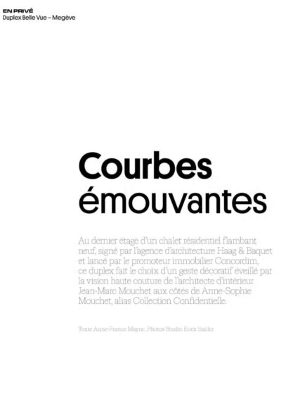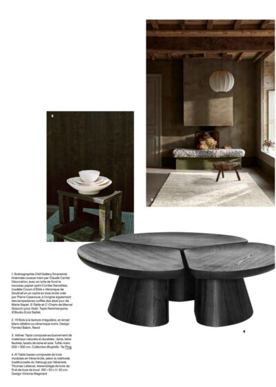 French decoration magazine Domodeco reports on a mountain residence with an interior decoration designed by Collection Confidentielle with Tai Ping custom made rugs in the main living room, and presents the Biophlic collection by Tai Ping.
