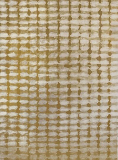 Dreamy, elongated shapes cloaked in shadow repeat, creating rows and columns. Silk and wool render tactile the subtle shift of value and hue in this Agnes Martin inspired piece.