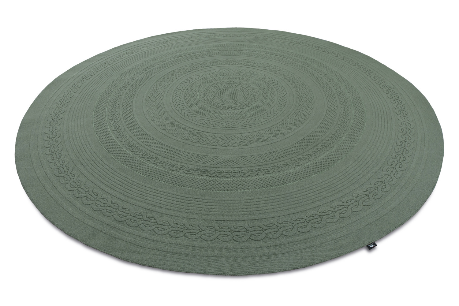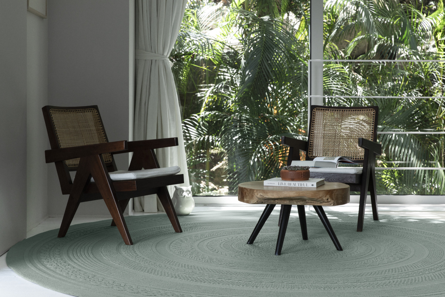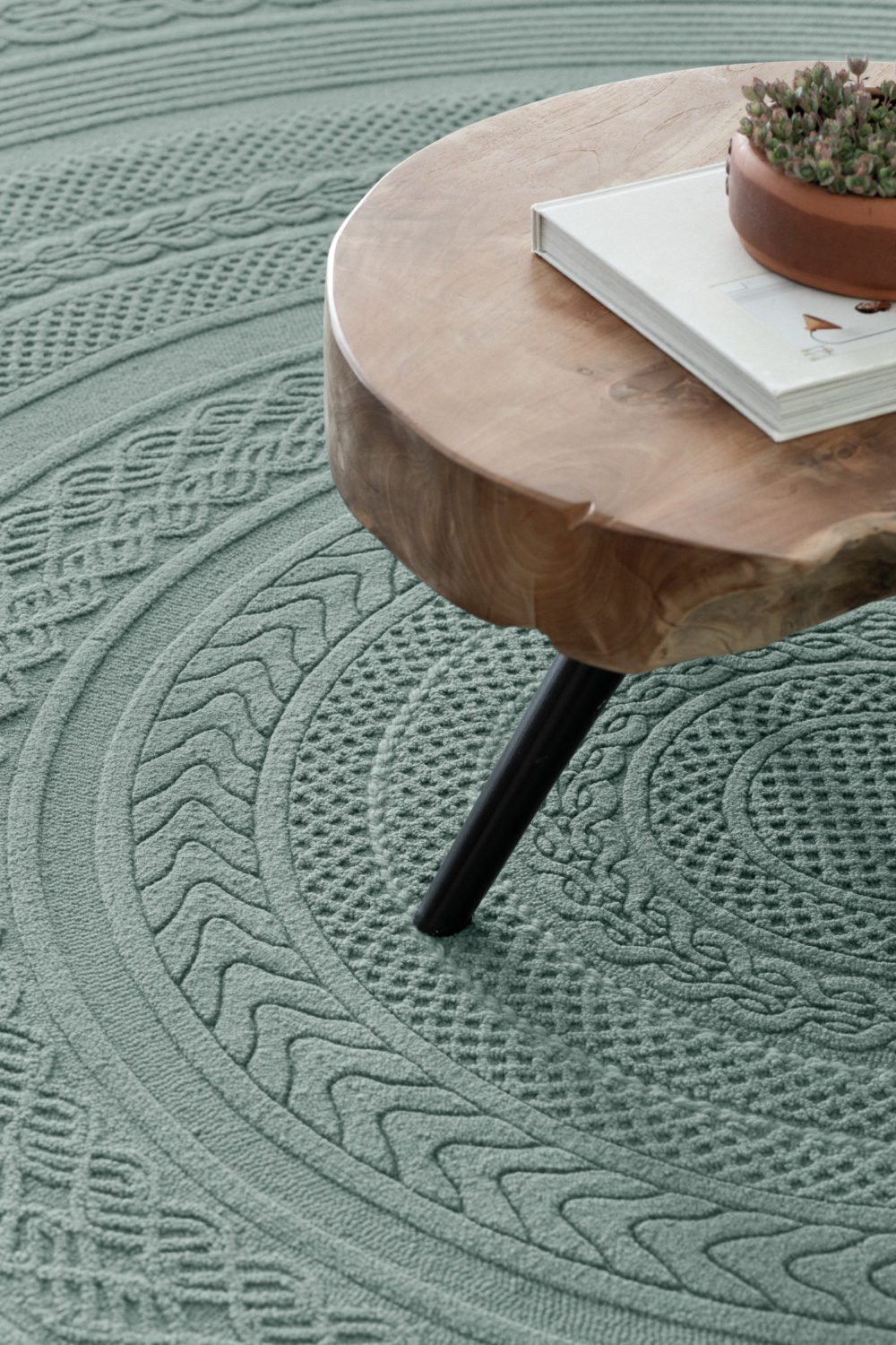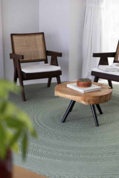 Iyashi celebrates the natural beauty of wool in a soothing sage green hue, enhanced by the timeless needlepoint technique. Its rounded form ensures seamless harmony within any space.