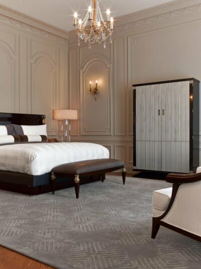 A 2014 renovation by Affine Design and CSL Hong Kong infused the locale’s century of glamour and French history with cutting-edge modernity. Hand-tufted Tai Ping textiles bathe the floors throughout the hotel; their restraint allows the Haussmann architecture to shine. Now an emblem of Parisian luxury hospitality, the Peninsula has earned the distinction of “Palace Hotel,” placing it among the finest 5-star establishments.