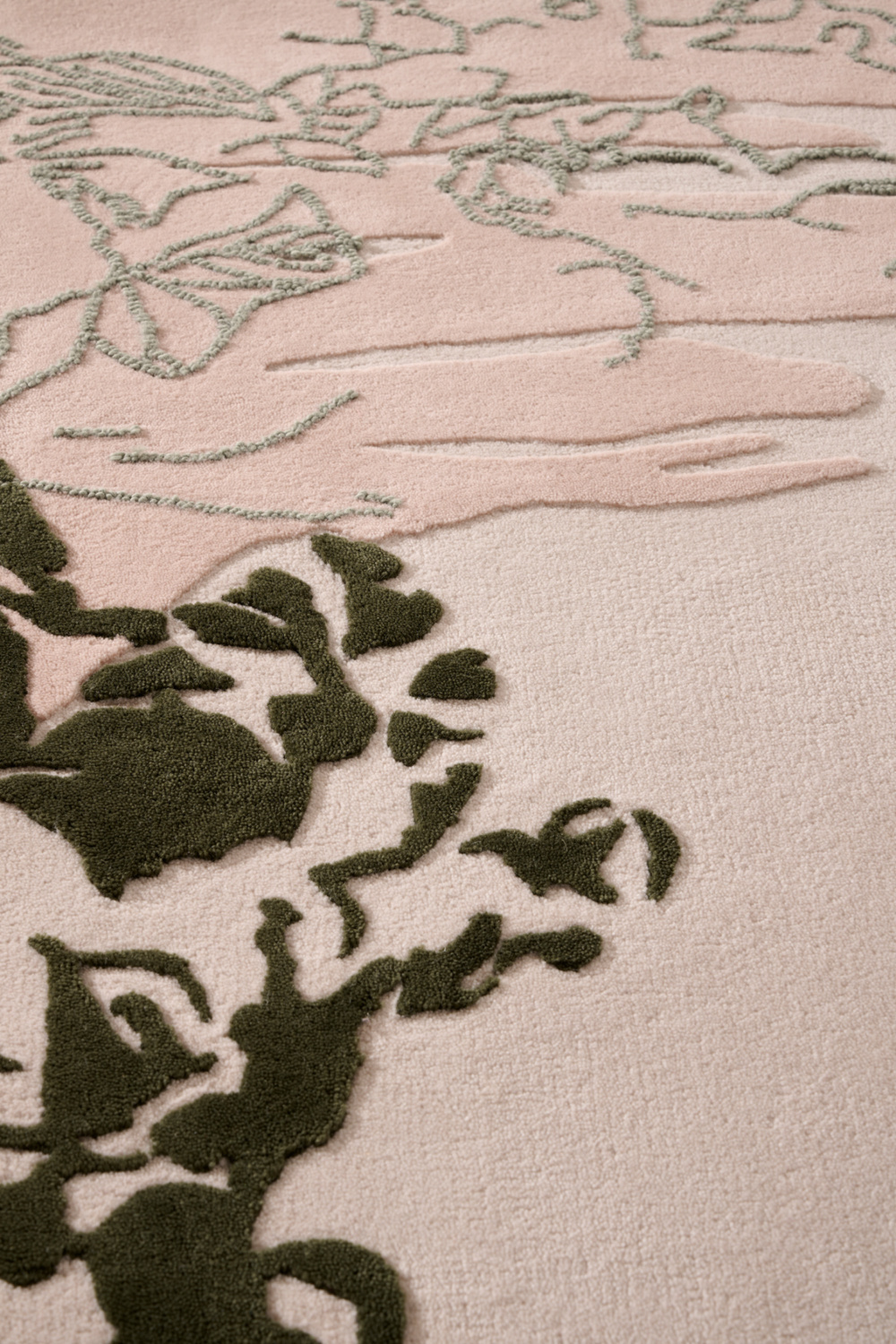 The Floræ Folium Series by Sam Baron rugs rugs feature a floral repertoire whose placement reflects the designer's whimsical play with styles. The exceptional quality of the tufted technique is enhanced by subtle colour effects.