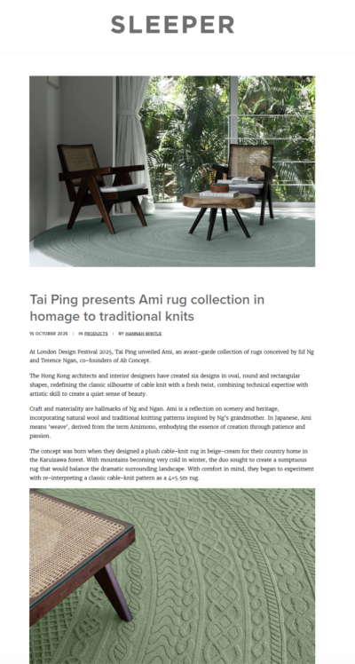Sleepers highlights the Ami collection, presented for the very first time at the London Design Festival.