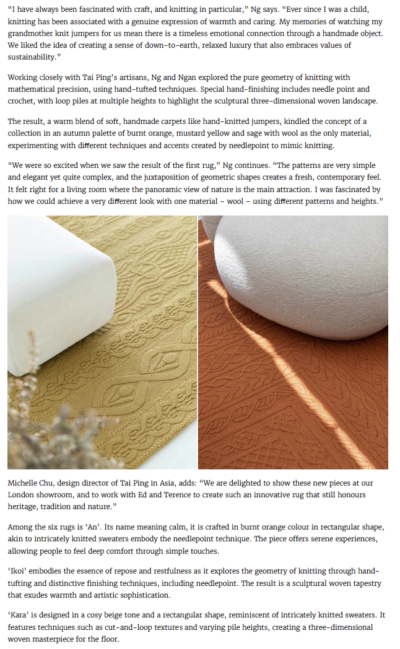The designers have created six designs in oval, round and rectangular shapes, redefining the classic silhouette of cable knit with a fresh twist, combining technical expertise with artistic skill to create a quiet sense of beauty.