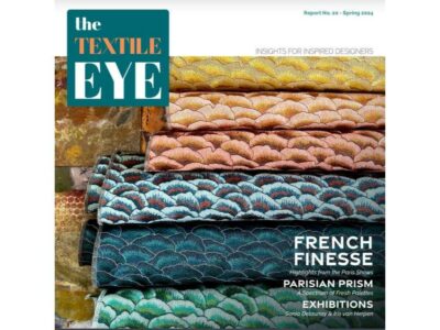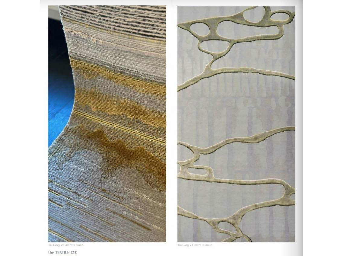 The Textile Eye features Ribbon Gesture I Agate and Lineage I Platinum from the Callidus Guild collection. The collection, created by designer Yolande Milan Batteau for Tai Ping, is inspired by a profound respect for craftsmanship and commitment to quality handmade goods.